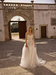 This exquisite mermaid-style off the shoulder dress is made from luxurious corded lace in a soft milk color, featuring long sleeves. The dress hugs the body, accentuating the curves, while the removable voluminous Mikado silk skirt adds dramatic flair. The skirt is complemented by a wide belt that cinches the waist and a cathedral train.