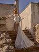Fusta se mișcă grațios și fluid, oferind un aspect elegant și voluminos care se potrivește perfect pentru o ceremonie de vis. Trena adaugă un detaliu spectaculos și regal, făcând rochia potrivită pentru un moment memorabil și grandios. "Evelyn" este rochia ideală pentru mireasa care vrea să fie remarcabilă și să se simtă specială într-o zi plină de frumusețe și emoție.
