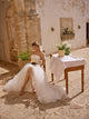 Fusta rochiei curge într-o mișcare fluidă și elegantă, creând un efect de volum și grație care adaugă un plus de sofisticare. Trena aduce un detaliu spectaculos și regal, ideală pentru a adăuga un element grandios unei ceremonii de poveste. "Cassandra" este rochia perfectă pentru mireasa care dorește să fie remarcabilă și să se simtă specială într-o zi de neuitat.