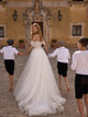 Fusta se mișcă cu fluiditate, creând un efect voluminos și grațios care adaugă un plus de sofisticare. Trena este un detaliu spectaculos care aduce un element regal și grandios, perfect pentru o ceremonie memorabilă. "Viviana" este rochia ideală pentru mireasa care dorește să fie remarcabilă și să se simtă specială într-o zi plină de frumusețe și emoție.