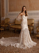 Rochia de mireasă "Callista" este simbolul feminității și al eleganței subtile. Creată din dantelă fină și material fluid, această rochie aduce un aer romantic și sofisticat, ideal pentru o nuntă în aer liber sau într-o locație romantică. Designul său rafinat include detalii fine, cum ar fi broderii florale și elemente delicate din tulle, care conferă un aspect de poveste.