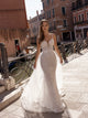 Fusta fluidă, cu straturi subtile de tulle, curge delicat, oferind o mișcare grațioasă. "Aurelia" este potrivită pentru o nuntă romantică, desfășurată într-un cadru natural, unde fiecare detaliu contribuie la un moment de neuitat.