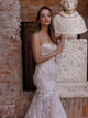 "Beatrice" este rochia de mireasă care emană eleganță și rafinament prin simplitatea sa bine gândită. Realizată din satin de calitate superioară, această rochie este decorată cu detalii subtile de mărgele și dantelă fină. Decolteul în formă de V și spatele deschis adaugă o notă îndrăzneață, fără a compromite eleganța generală a rochiei.