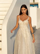Fusta cade cu o fluiditate naturală, creând o siluetă de vis care se mișcă ușor la fiecare pas, adăugând un plus de farmec și eleganță. Trena discretă aduce acel detaliu special care transformă fiecare moment într-unul memorabil, perfect pentru o ceremonie într-un decor de basm. "Celeste" este rochia ideală pentru mireasa care dorește să fie sofisticată și delicată în ziua nunții, oferindu-i un look de poveste.