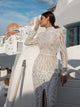 Fusta amplă, realizată din straturi de satin și tulle, se mișcă fluid și adaugă volum, creând o siluetă impresionantă. Trena lungă și elegantă adaugă un detaliu spectaculos, ideală pentru o ceremonie grandioasă, fie că se desfășoară într-un decor somptuos sau într-un peisaj natural idilic. "Natalia" este rochia ideală pentru mireasa care dorește să radieze cu un stil sofisticat și elegant, având un look memorabil și deosebit în ziua nunții.