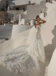 Fusta amplă, realizată din straturi de satin și tulle, curge fluid și oferă un volum frumos, creând o siluetă de vis. Trena lungă adaugă un detaliu spectaculos, perfectă pentru o ceremonie elegantă, fie într-un cadru de lux sau într-un peisaj natural. "Seraphina" este rochia ideală pentru mireasa care dorește să combine tradiția cu modernitatea într-o ținută deosebită, făcând ca fiecare moment din ziua nunții să fie plin de rafinament și eleganță.